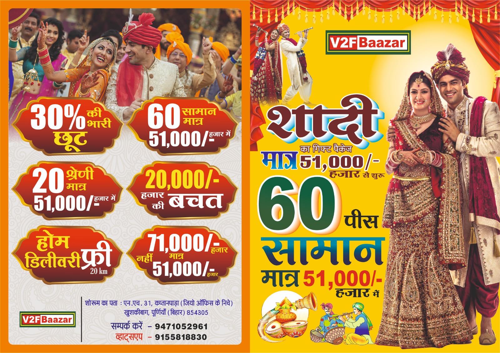 Get fully curated Shaadi Packages starting from just ₹51,000 to ₹99,000, including all essential wedding items, top-quality material, and free home delivery up to 20 km. Perfect for families looking for convenience, savings, and premium collection in one place.
